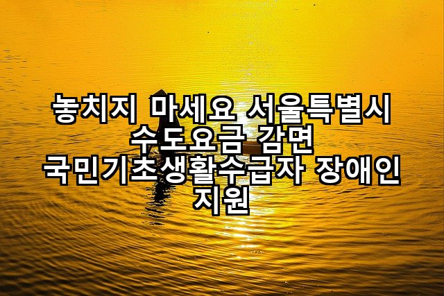 놓치지 마세요 서울특별시 수도요금 감면 국민기초생활수급자 장애인 지원